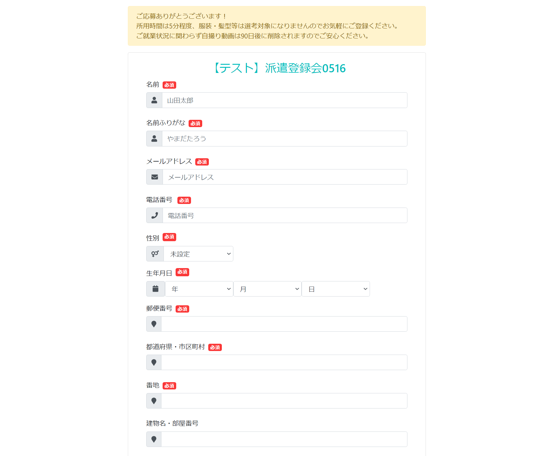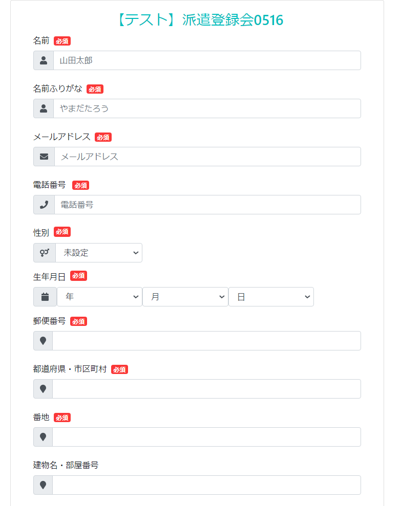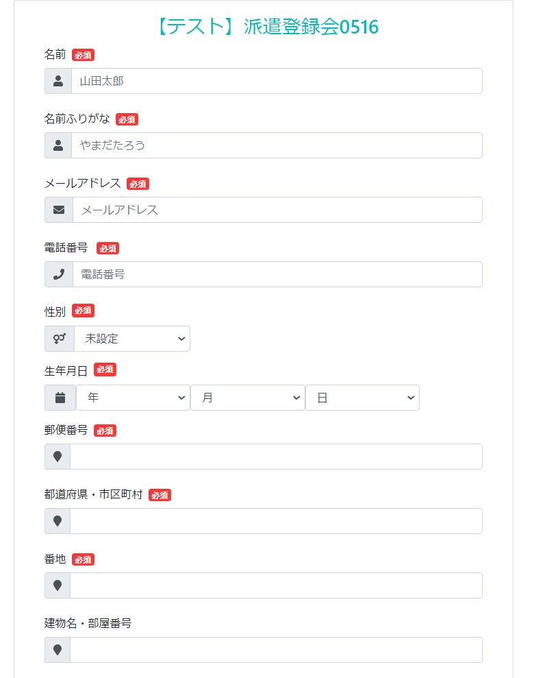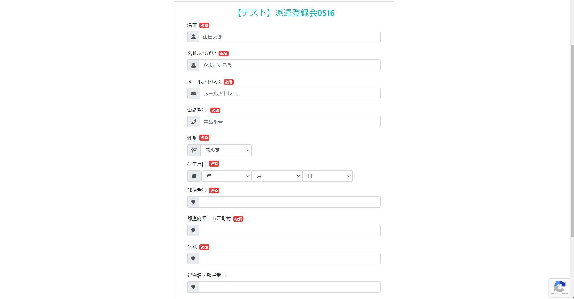 メールアドレス以外の項目については企業様によって必須または任意にするカスタマイズすることが可能です。