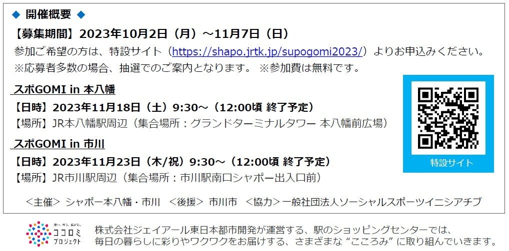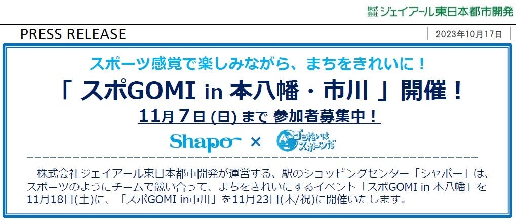 昨年開業50周年を迎えたシャポーは、街の玄関口の「駅」に直結し、地域のお客さまに支えられ、街とともに成長してまいりました。街への感謝の気持ちを込めて昨年「スポGOMI in 本八幡」を初開催し、18チーム・50名以上の方々にご参加いただき、計42㎏ものごみを回収することができました。