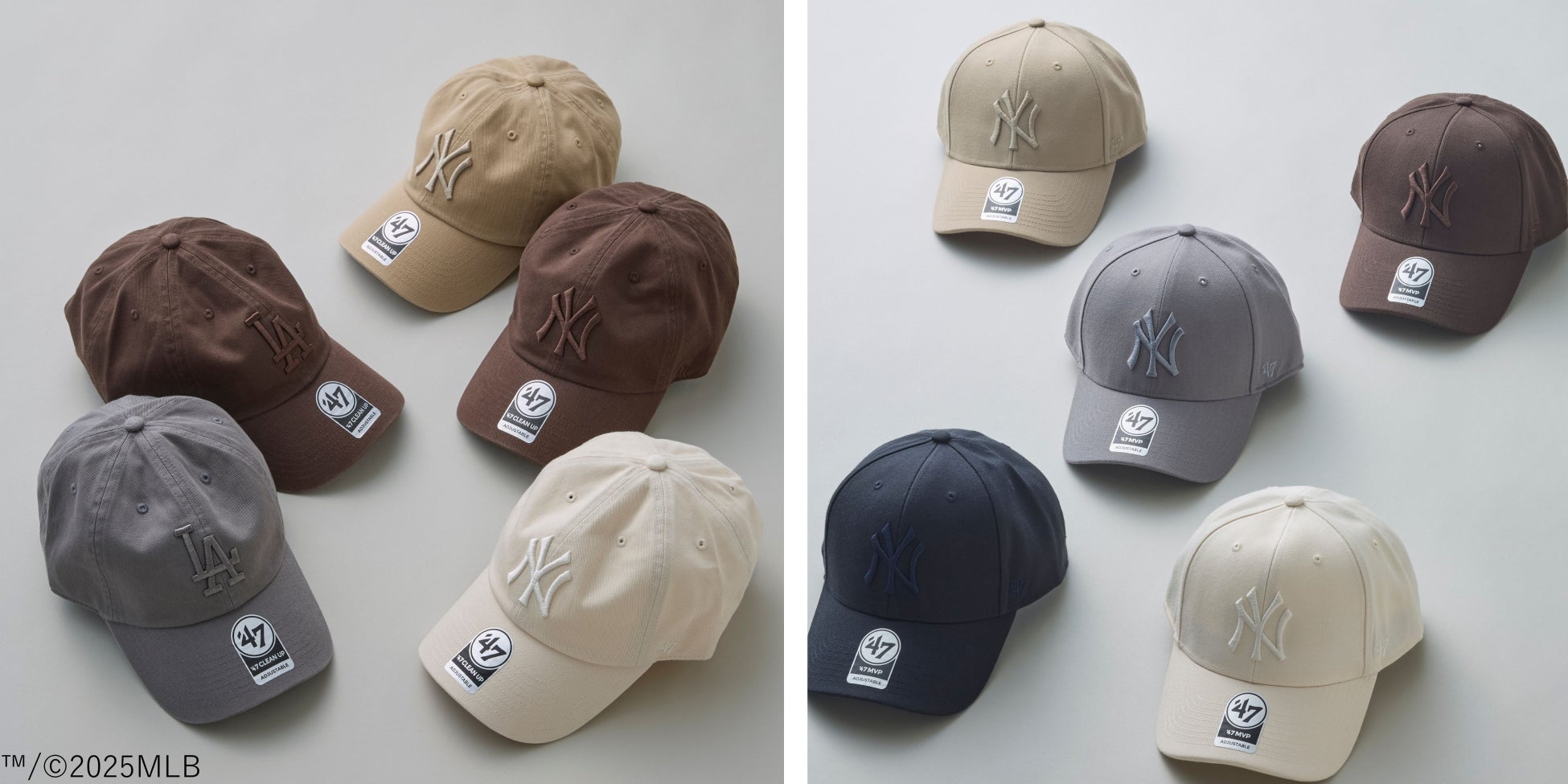 【’47(フォーティーセブン)】人気シルエット「CLEAN UP」「MVP」に、ロゴまでワントーンで仕上げたトナルカラーコレクションが新登場