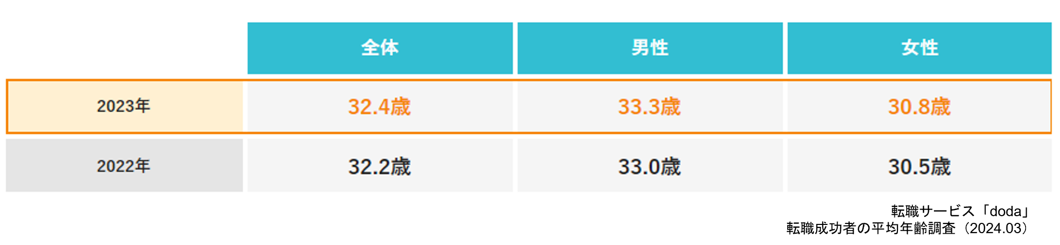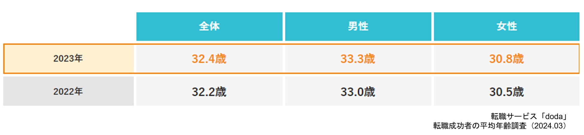転職サービス「doda」転職成功者の平均年齢調査【最新版】転職成功者の平均年齢は32.4歳