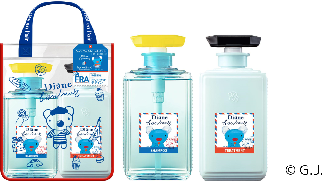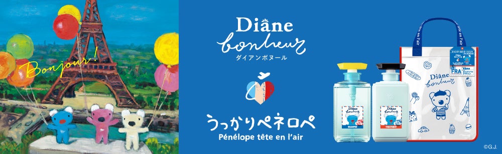 20周年を迎えたフランス生まれのキャラクター『うっかりペネロペ』とフランス・グラース産のクラフトフレグランスを使用した『ダイアンボヌール』のコラボレーションが実現しました。ペネロペがデザインされた『ダイアンボヌール ダメージリペア&シャイン シャンプー&トリートメントセット ブルージャスミンの香り』と、ちょっとしたお出かけにも使えるオリジナルデザインの特製クリアバッグがセットになって数量限定発売。また、発売に合わせ、コラボTwitterキャンペーンも開催いたします。この機会にブルージャスミンの香りとともに愛らしいペネロペに夢中になってください。