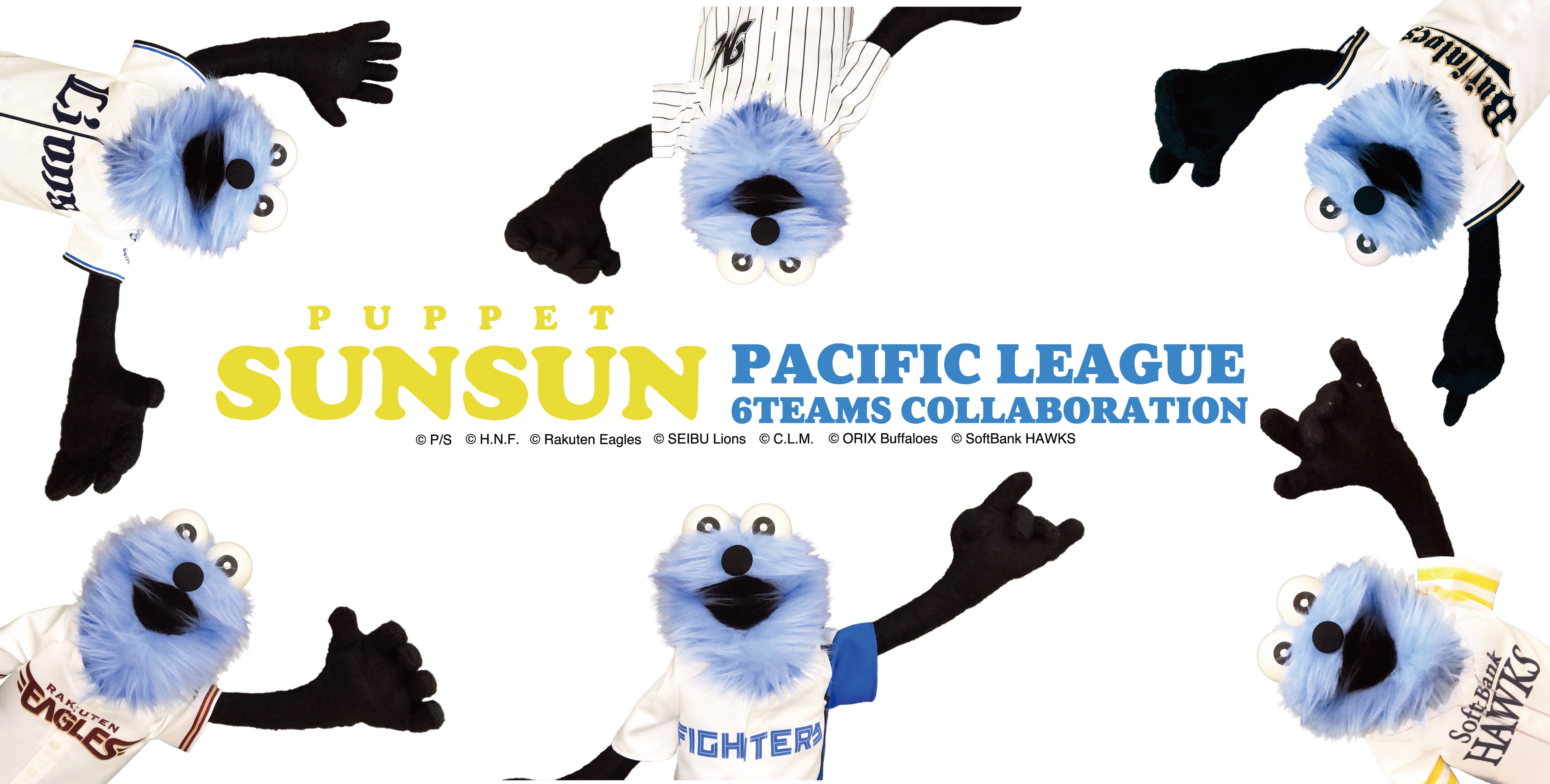 「パペットスンスン」がプロ野球パ・リーグ6球団と初コラボ!ユニフォームを着たスンスンのアイテム7種が9月15日より発売