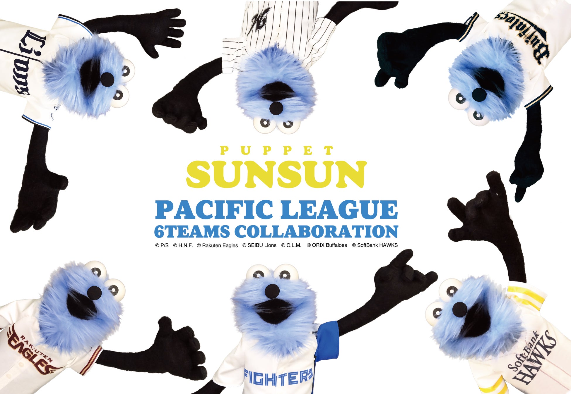 6才のパペット「パペットスンスン」とプロ野球パ・リーグ6球団(北海道日本ハムファイターズ、東北楽天ゴールデンイーグルス、埼玉西武ライオンズ、千葉ロッテマリーンズ、オリックス・バファローズ、福岡ソフトバンクホークス)による初めてのコラボレーションアイテムを展開いたします。