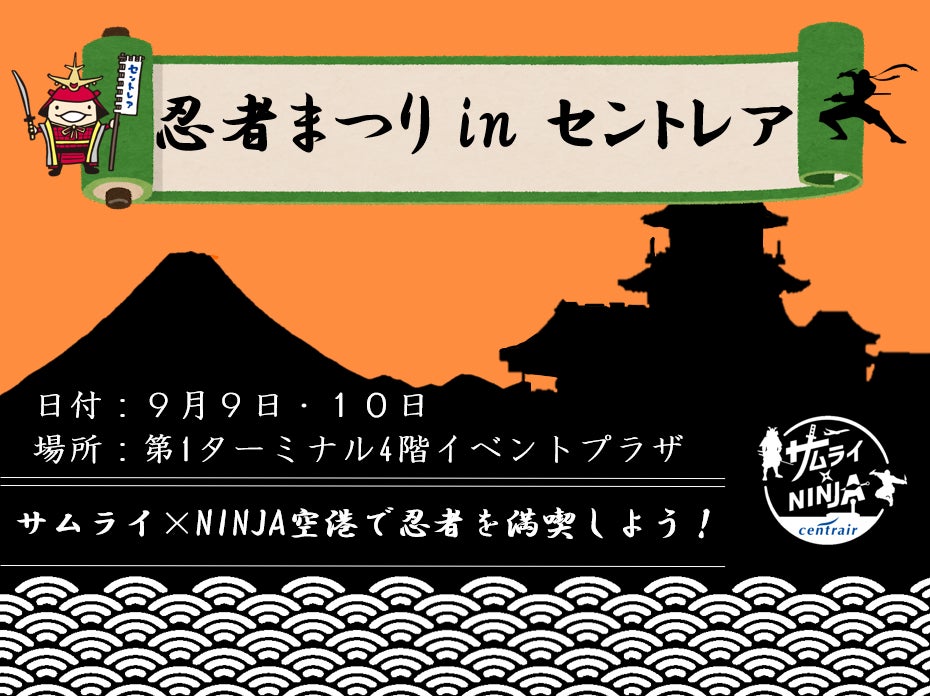 中部国際空港セントレアは「サムライNINJA空港」。全世界から忍者ファンが集まる国際的な学会および忍者イベントをセントレアで開催します。