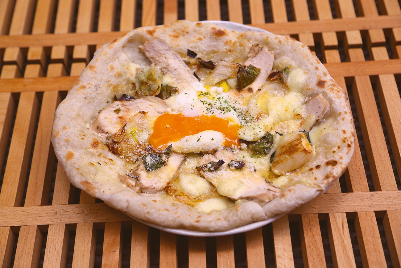 桜色の肉質を持ち旨味が濃いことで有名な美桜鶏と、オーブンで甘みを引き出したネギを半熟卵と合わせました。今の季節しか味わえない一品をお楽しみください