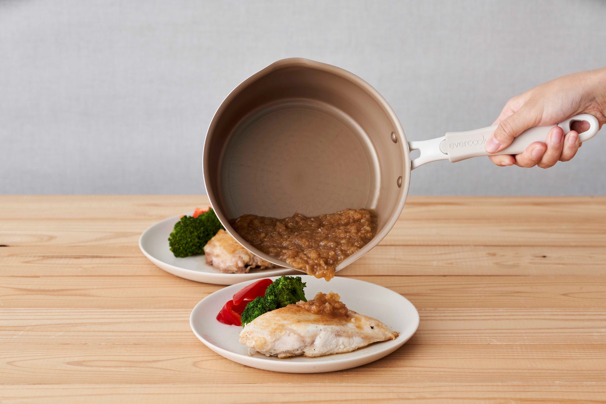 ツルすべフライパンで人気のevercookからアイボリーカラーがかわいい蓋付き片手鍋「evercookマルチに使える鍋パン」が発売