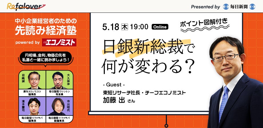 「Refalover(リファラバ)」が中小企業経営に役立つ「先読み経済塾」 を5月18日(木)に開催