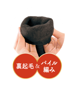 ②裏起毛+パイル編みで保温性が高くあたたかい。