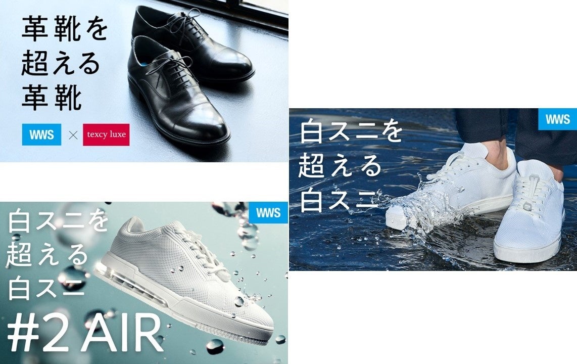 WWSご愛用者から「WWSに合う靴や革靴が欲しい」「機能的で快適なスニーカーが欲しい」というお声を多数いただき、WORKWEAR SHOESが誕生しました。第一作目は、靴の代表格であるアシックス商事が手掛ける「texcy luxe」とコラボし、“カカトが踏める”*¹「ボーダレス本革シューズ」を販売しました。本商品は、新幹線で革靴を脱ぐビジネスマンが多いことから、革靴の「脱ぎ履きしにくい」「足が疲れやすい」「長距離移動やデスクワークに不向き」といったネガティブな要素を払拭した商品を製作しました。クラウドファンディングの応援購入総額は1,300万円を超え、全クラウドファンディングサイトでビジネスシューズ部門・応援購入総額歴代1位*²を記録し、最も売れたビジネスシューズに認定されました。お客様からは「軽量で履き心地が良く、長時間の移動も楽になった」「カカトを踏めるので快適」など嬉しい言葉が寄せられています。