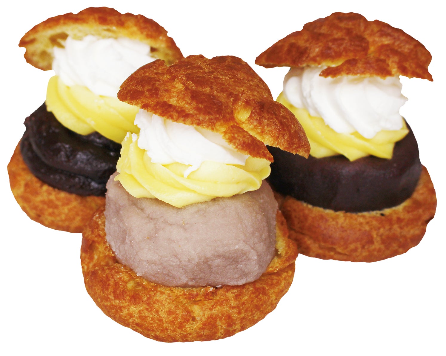 和と洋をコラボしたシュークリーム。あんこ&カスタード&ホイップクリームの3層仕立てで、糖度の違う3種のあんこを楽しめます。