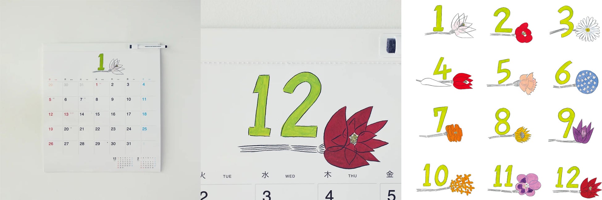 2006年に登場し、発売から20年目となる「ほぼ日ホワイトボードカレンダー」。いっぱい書けて、スイスイ消せる、全面ホワイトボード仕様のカレンダーとして、全国ロフトのカレンダー売り場で19年連続1位を記録しています。2025年版では、「月の数字」を画家の山口一郎さんが、素敵なお花で彩ってくださいました!
