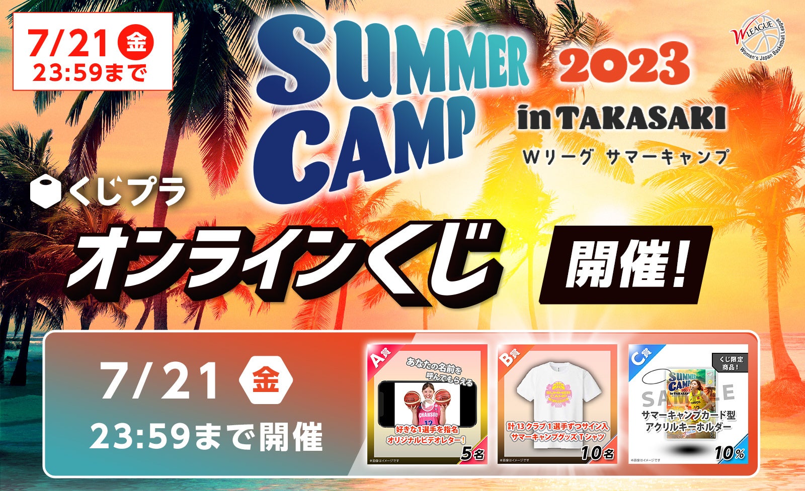 「サマーキャンプ2023 in 高崎」の開催を記念して、オンラインくじプラットフォーム「くじプラ」にてオンラインくじを開催します。好きな選手からのオリジナルビデオメッセージや、サマーキャンプ出場のWリーグ所属チームから1名ずつ計13選手のサイン入りTシャツなど、ここでしか手に入らない豪華アイテムがラインアップ。また、くじ限定カードもあり、Wコレユーザーの皆様には必見の内容になっていますので、ぜひご参加ください。