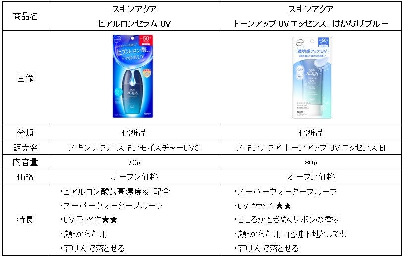 「ヒアルロンセラムUV」 「トーンアップUVエッセンスはかなげブルー」 「ナチュラルベールUVエッセンス」 新発売
