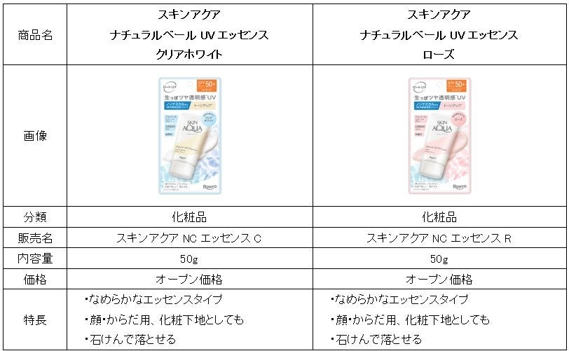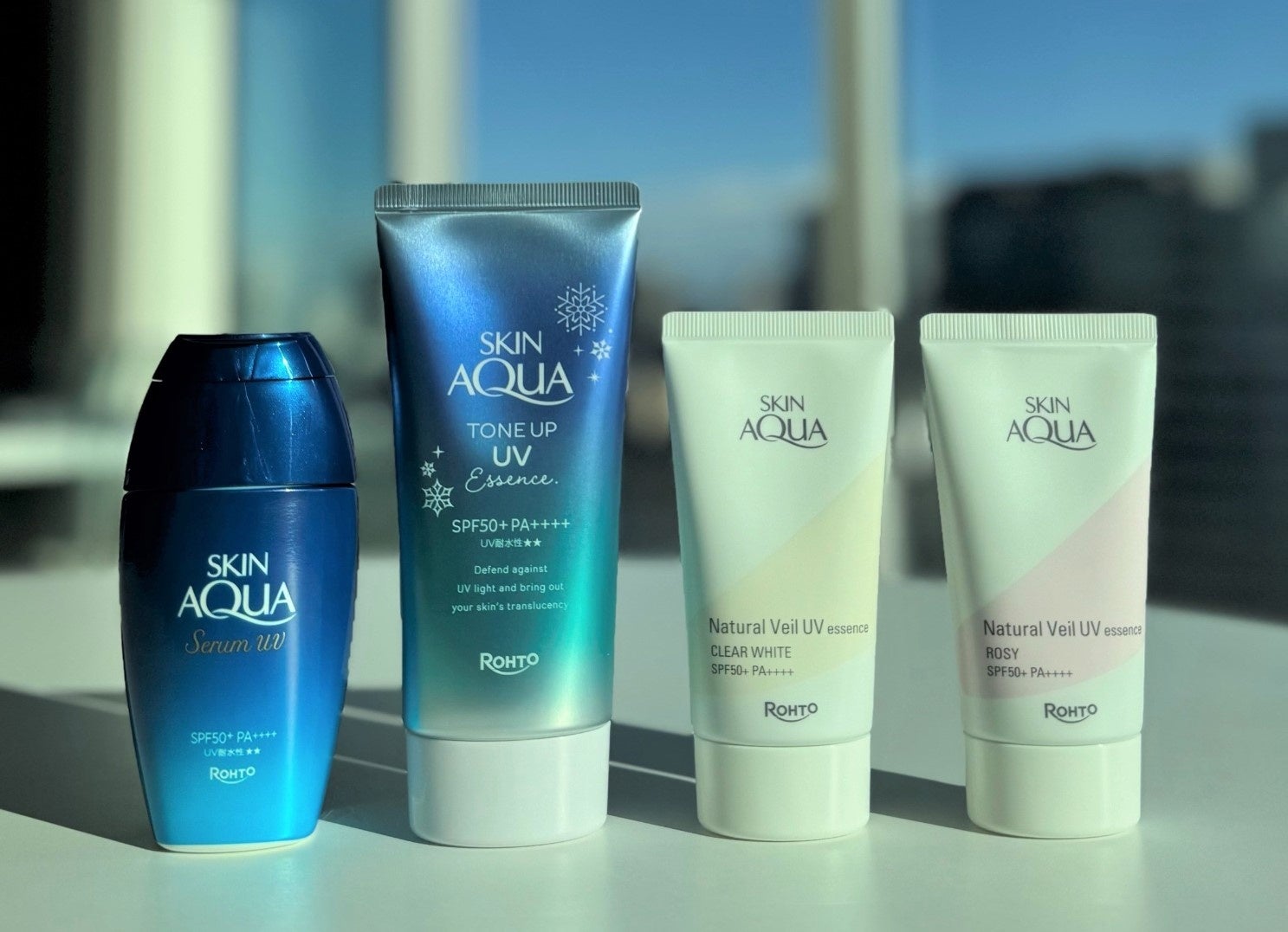 ロート製薬株式会社(本社:大阪市、社長:杉本雅史)は、スキンケアのように毎日気持ちよく使える日やけ止めを提案してきた「スキンアクア®」から、スキンケア効果と日やけ止め効果を両立しヒアルロン酸を最高濃度※1配合した「ヒアルロンセラムUV」、人気のトーンアップシリーズから色白肌※2を実現する新色「トーンアップUVエッセンス はかなげブルー」、肌にやさしい使い心地でツヤ感のある自然な美肌※2を叶える「ナチュラルベールUVエッセンス クリアホワイト/ローズ」を、2025年1月29日(木)に全国のドラッグストア、ロート通販、ECにて発売いたします。