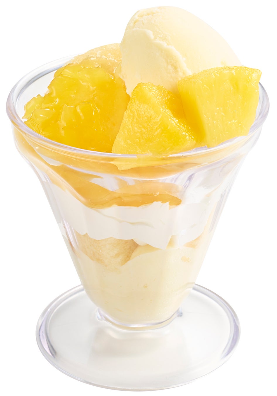 今回は、初夏にぴったりな新作スイーツ2商品が登場いたします。「瀬戸内レモンのレアチーズアイスケーキ」は、瀬戸内レモンの爽やかな酸味が楽しめます。チーズムースはクリームチーズをベースにしつつ、隠し味にゴーダチーズペーストを加えてコクをアップさせました。味のアクセントとして瀬戸内レモンソースをマーブル状に混ぜ込み、レモンの酸味と香りで、さっぱりといただける味に仕上げています。「パインいっパインパフェ」は、その名の通り、パイン尽くしのパフェです。パイン果汁を使ったまろやかなムース、パッションフルーツでアクセントをつけたシャリシャリのパイングラニタ、パイン果汁をたっぷり使ったシャーベット、ゴロゴロとした素材感を残したパインソース、熟した美味しいパインと、5種類のパイン味を楽しめます。パインの深みのある甘さとバランスの良い酸味をさまざまな味と食感で楽しめます。