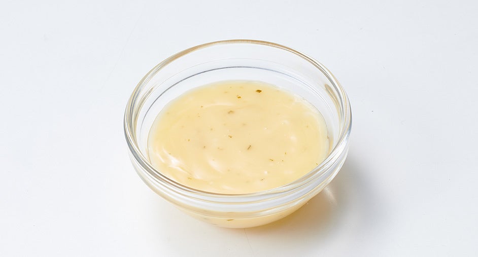 一般的なタルタルソースとは違い、少し甘みがあるマヨネーズがベースのなめらかなソースです。九州の方が好きな味に仕上げています。