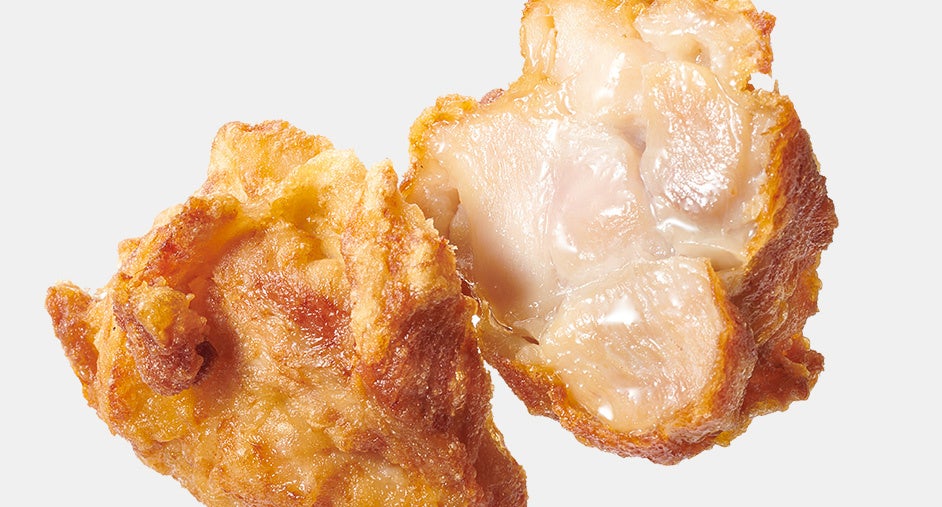 「にんにく、しょうが、醤油」を独自のブレンドで配合した漬け込み液で、鶏肉本来の味と旨味を感じられるから揚になっております。また、衣は時間が経っても、食感が感じられるように小麦粉やでんぷんを配合しています。