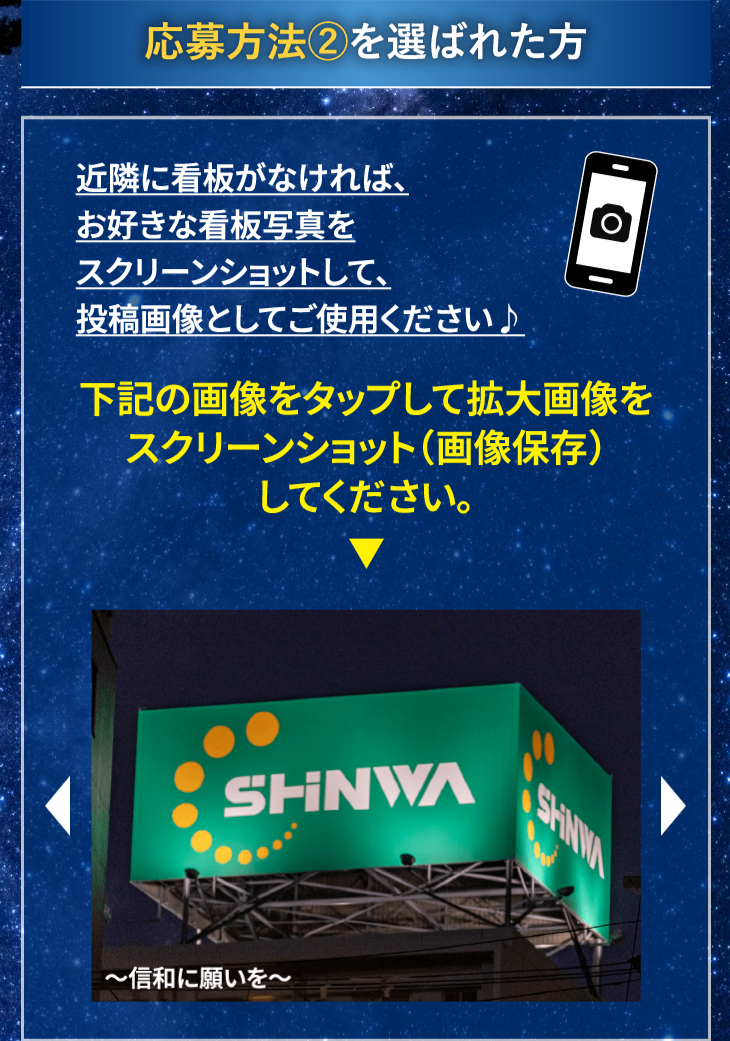キャンペーンサイト下部にご用意した信和グループの看板写真をスクリーンショットしてSNS投稿!