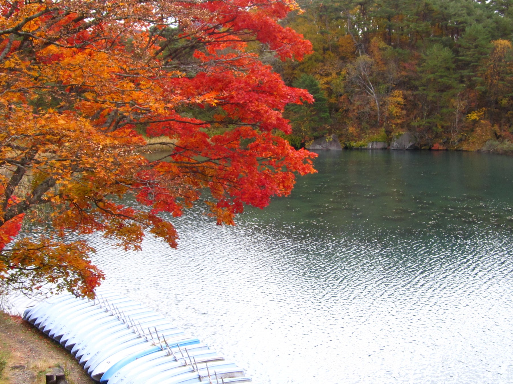 水面に紅葉もまた美しく、毘沙門沼では貸しボートも行っており、より身近に紅葉を感じる事ができます。