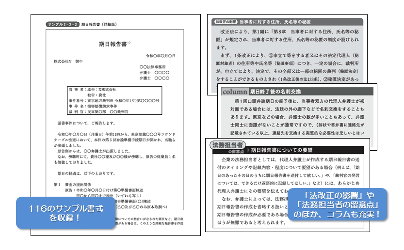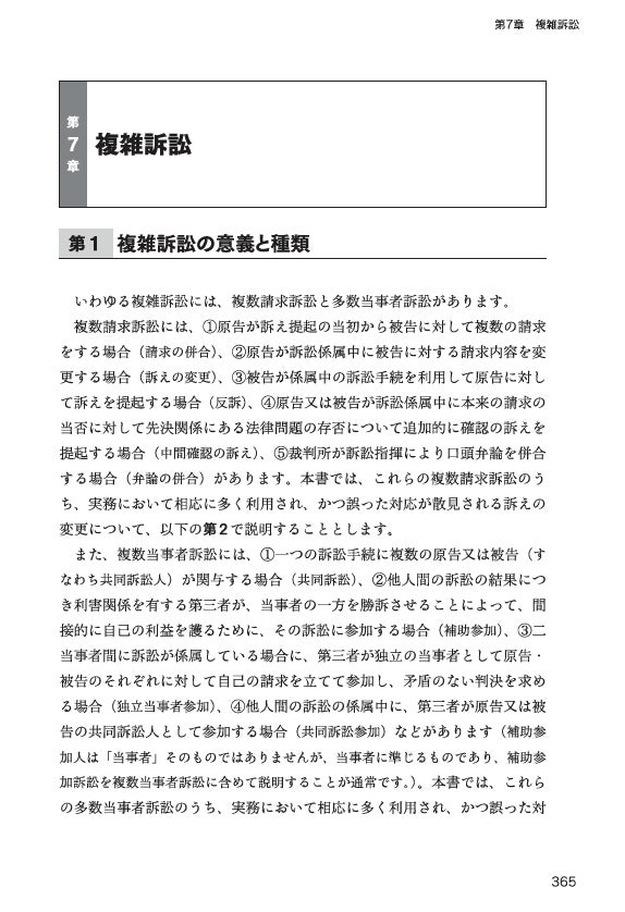 加えて第3版では、簡易裁判所での審理や、補助参加、複雑訴訟形態について内容を改訂。サンプル書式も116書式を収録しています。