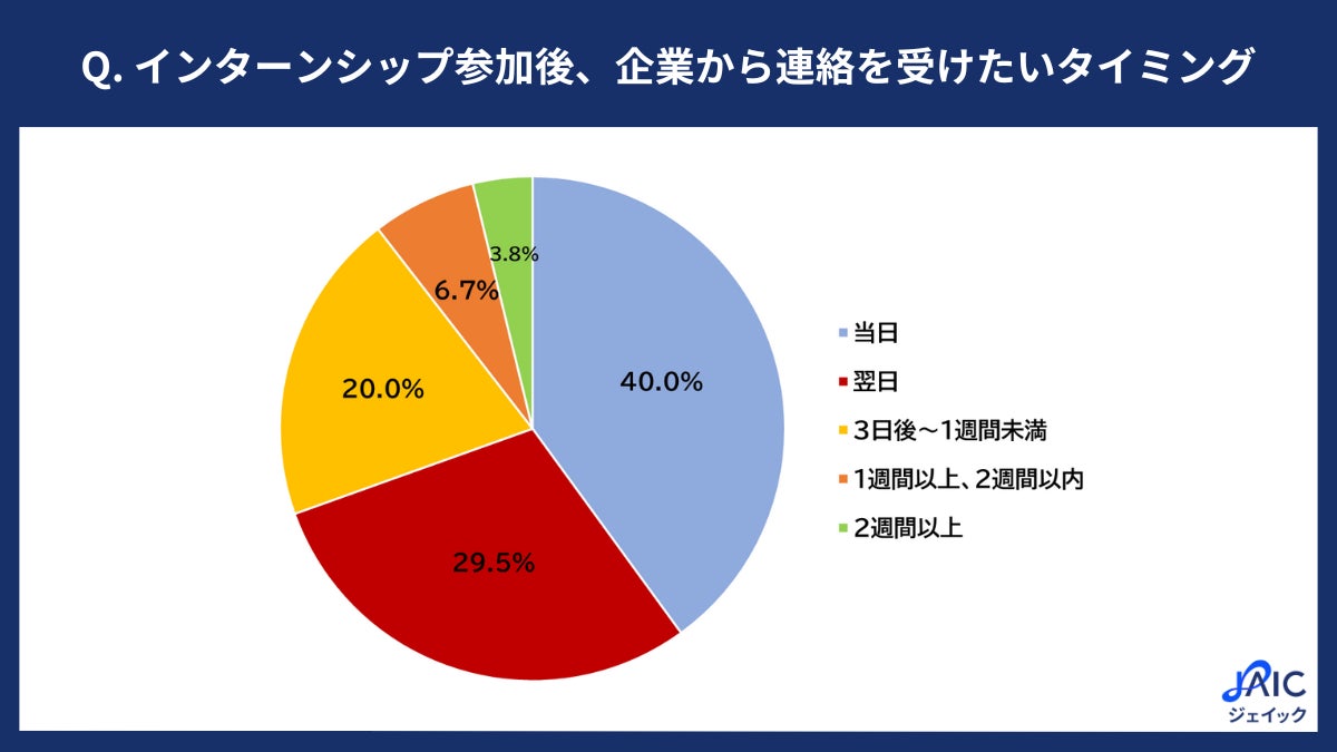 約7割が、インターンシップ後「当日・翌日」の連絡を希望。初動対応が志望度を左右