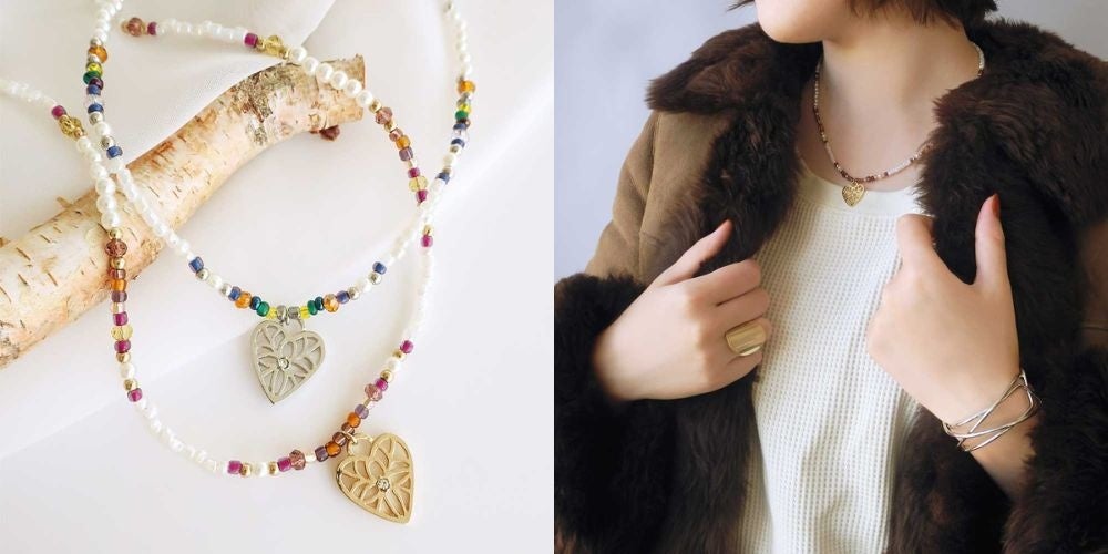 カラフルなビーズを使用したネックレスとヘアピンは、身に着けるだけで気分が上がるアイテムです。