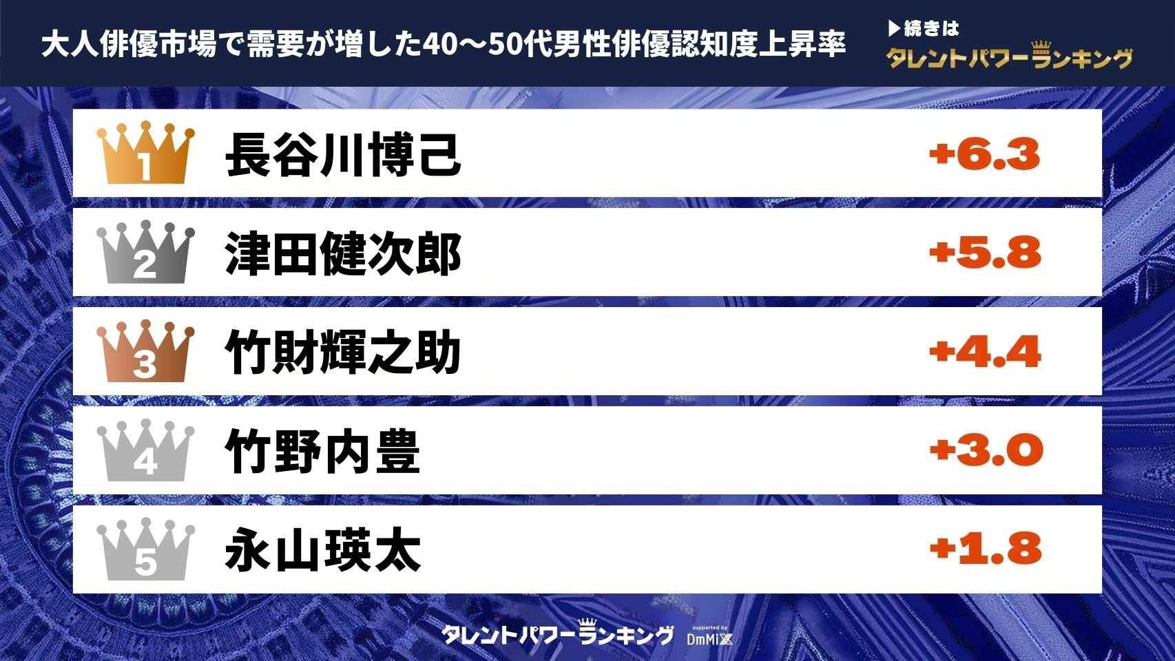 『タレントパワーランキング』が40〜50代男優の認知度上昇率ランキングを発表!WEBサイト『タレントパワーランキング』ランキング企画第351弾!