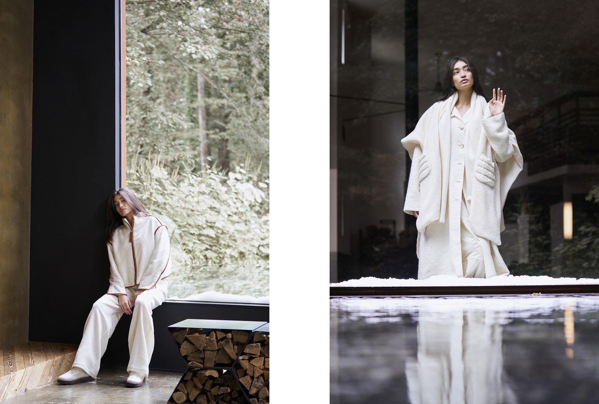 ホワイト、アイボリー、ベージュなどの温もりのあるエクリュートーンで展開されるコレクションは、アルパカ、ウール、ブークレー、コーデュロイなどのソフトな素材を使用し、ゆったりとしたフォルムを描きます。どのアイテムをコーディネートしても自然体なスタイルが完成し、冬の訪れが待ち遠しくなります。