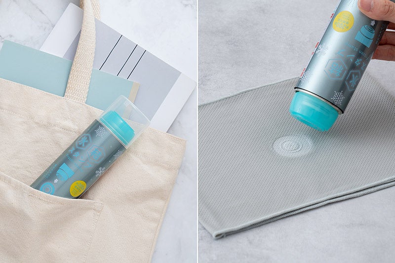 スタンプ式の使用でピンポイント冷却、スプレー式で広範囲をクールダウンするなど、使用シーンに合わせて選べる2WAY。