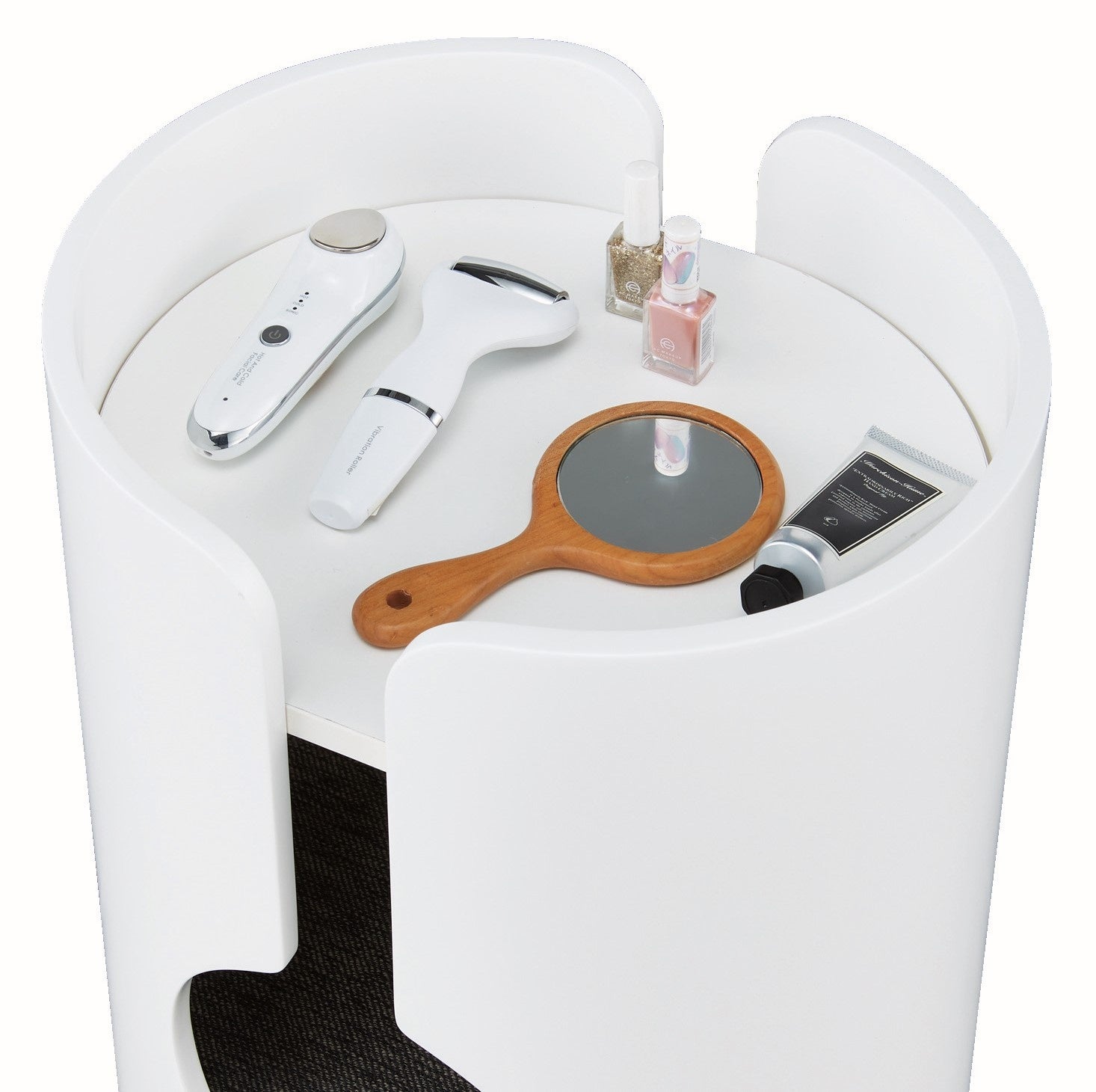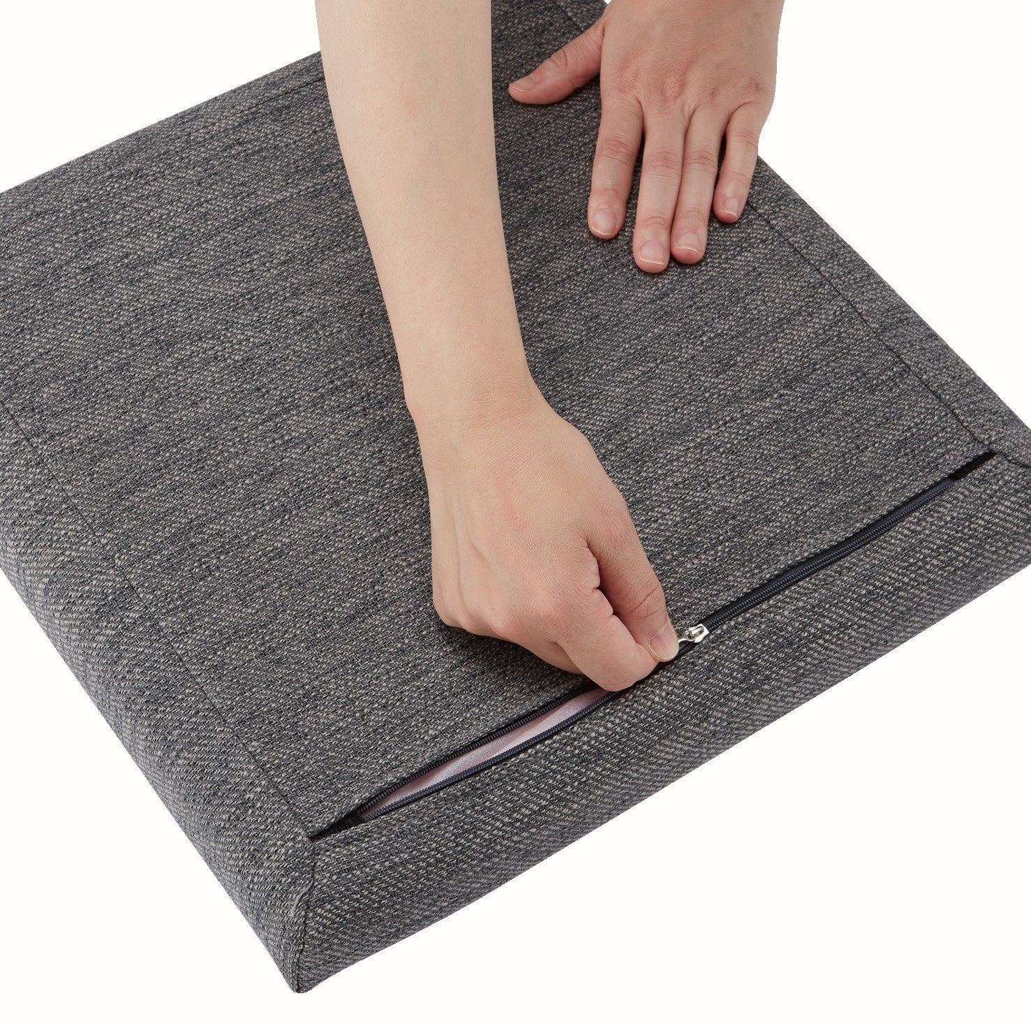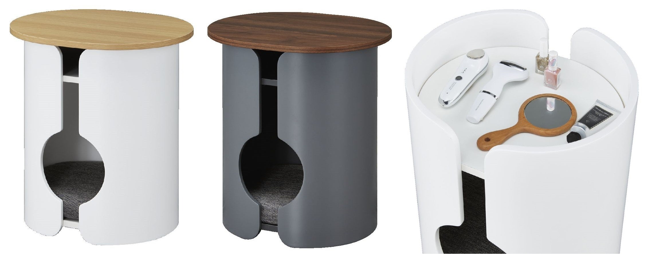 上下段に置ける2枚のクッション付きのサイドテーブル。クッションカバーは外せて洗えるので衛生的、さらにひっかきキズ、汚れに強い生地を使用しています。