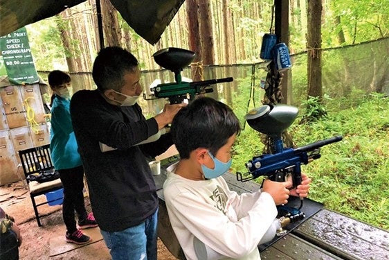 世界中で人気を博し、世界大会も開催されている「ペイントボール」に親子で挑戦します。ペイントボールのフィールドは、数々の障害物や通路が設置されており、緊張感と白熱した戦いを生み出します。アドレナリン溢れるスリル満点の試合は、お子様はもちろん大人も楽しむことができます。