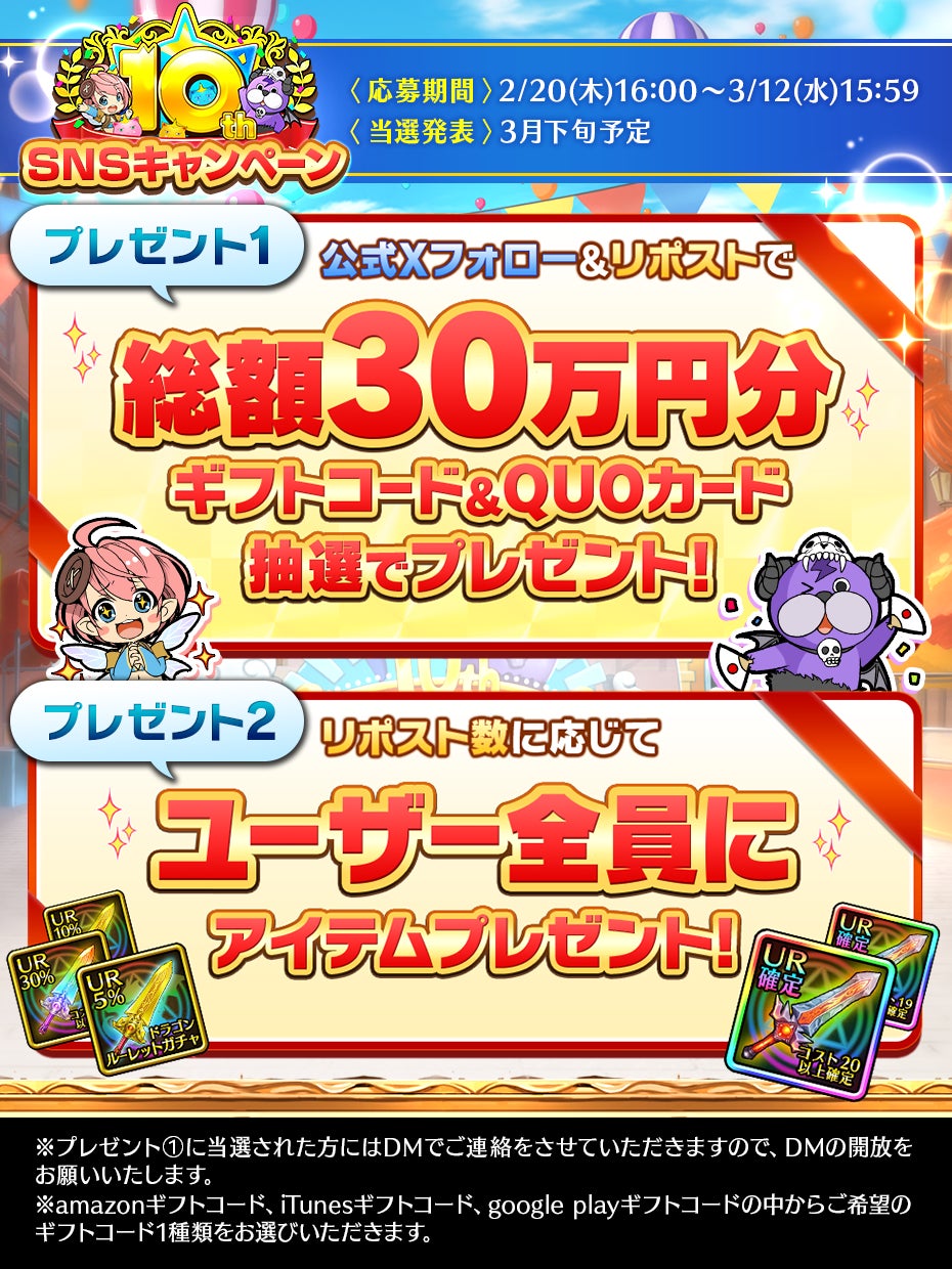 『ぼくとドラゴン』サービス開始10周年!10周年をお祝いして超豪華キャンペーン実施中!