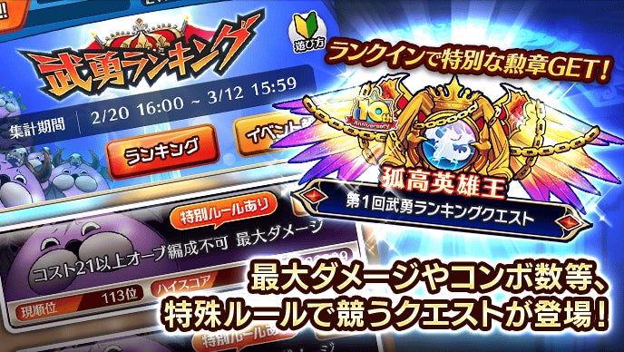 最大ダメージやコンボ数等の特殊ルールでランキングを競うクエストイベントが新登場!