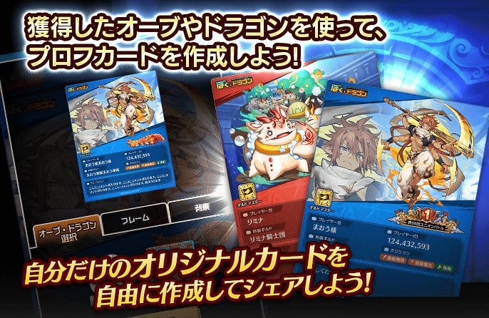 獲得したオーブやドラゴンを使って、プロフカードを作成できる機能を追加!