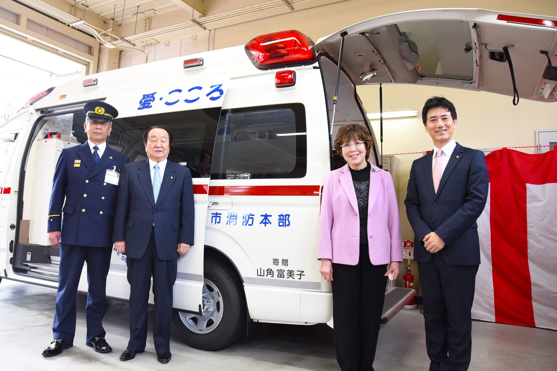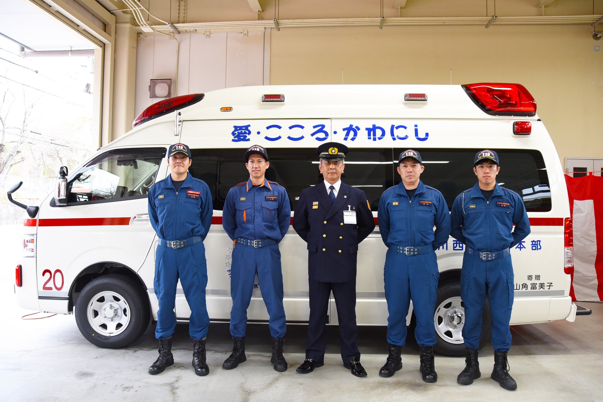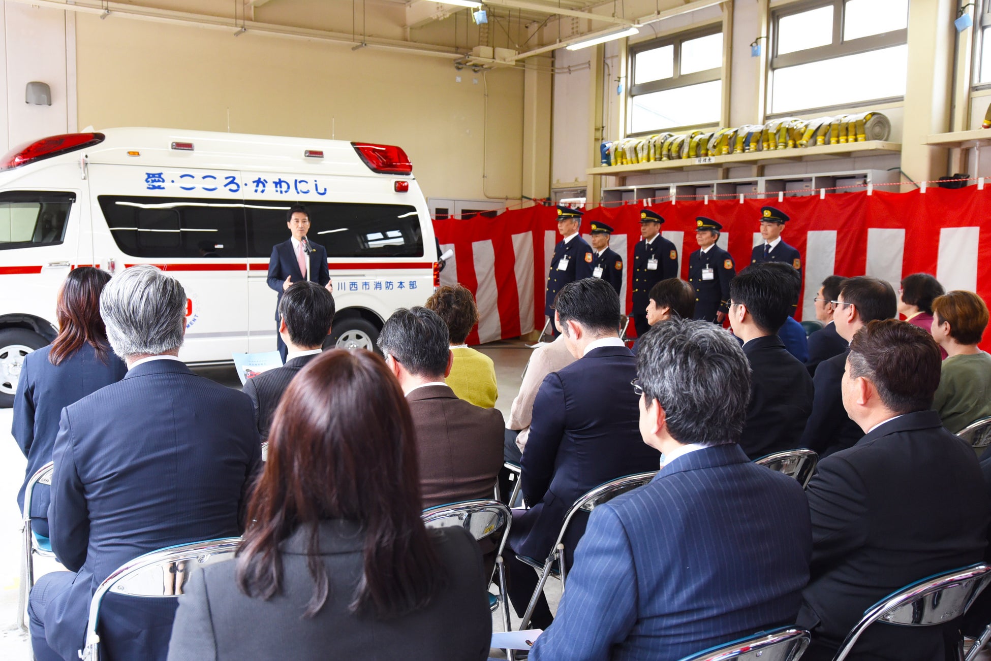川西市消防本部 石倉消防長は、「川西市においては、救急需要の増加傾向が続いており、ご寄附いただいたことに深く感謝しています。久代出張所に救急隊を配備することで、より一層、市民の安全・安心を守っていきたいです」などと話しています。