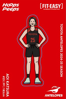 今回、アンテロープスとのコラボグッズが誕生しました。イラストを手がけるのは、複数のBリーグチームともコラボしているグラフィックデザイナー「MQ」よるバスケットボール選手のイラストシリーズ「HoopsPeeps」。選手全員が集合したイラストがあしらわれたフェイスタオルとトートバッグ、各選手などのステッカーの3種類を販売しました。(※数量限定)