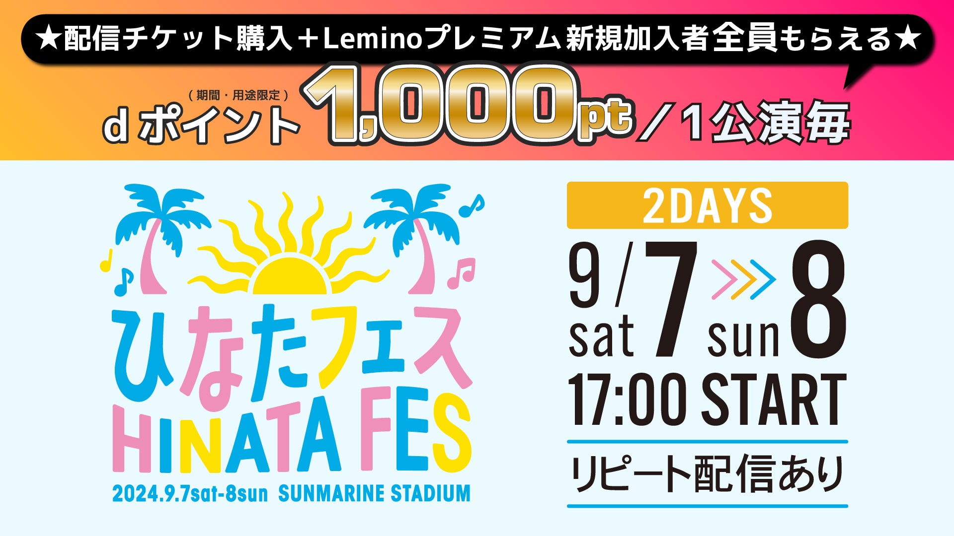 株式会社NTTドコモ(以下、ドコモ)は、映像配信サービス「Lemino®」において、2024年9月7日(土)、9月8日(日)に行われる日向坂46「ひなたフェス 2024」の模様を生配信(PPV)いたします。また、2024年9月21日(土)、9月22日(日)にリピート配信いたします。