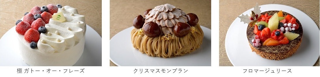 今年は、「極 ガトー・オー・フレーズ」のほか、和栗とフランス産マロンのクリームと2層のショコラの香りがリッチに広がる「クリスマスモンブラン」、アーモンドをたっぷり使ったフランス伝統菓子“パンドジェンヌ”を、レアチーズとフルーツで彩った華やかなリース型ケーキ「フロマージュリース」の3種をご用意いたしました。