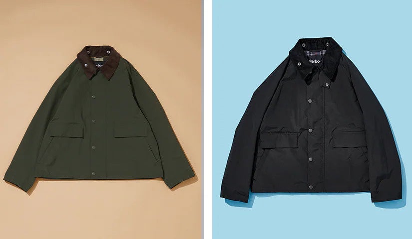 アイテムにはBarbourを象徴するタータンチェックの裏地や存在感のあるコーデュロイ襟などの伝統的なディテールは残しつつ、軽量かつ環境に配慮した再生ナイロンを表地に採用。裏地は春夏に着用しやすい背抜きの仕様となっているなど、クラシックながらも気の利いたマイナーチェンジが施された別注シリーズとなっています。