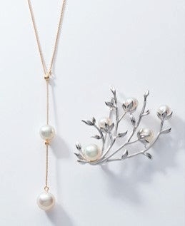 120年の真珠養殖技術による、巻きが厚くテリの良い高品質の真珠をお届けするブランド。アコヤ真珠にスライドパーツを合わせた遊び心のあるラリエットや上品なブローチが登場します。