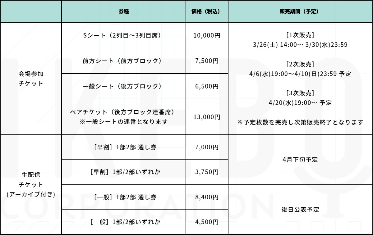 オンラインチケットの販売は後日発表しますので、お楽しみに!