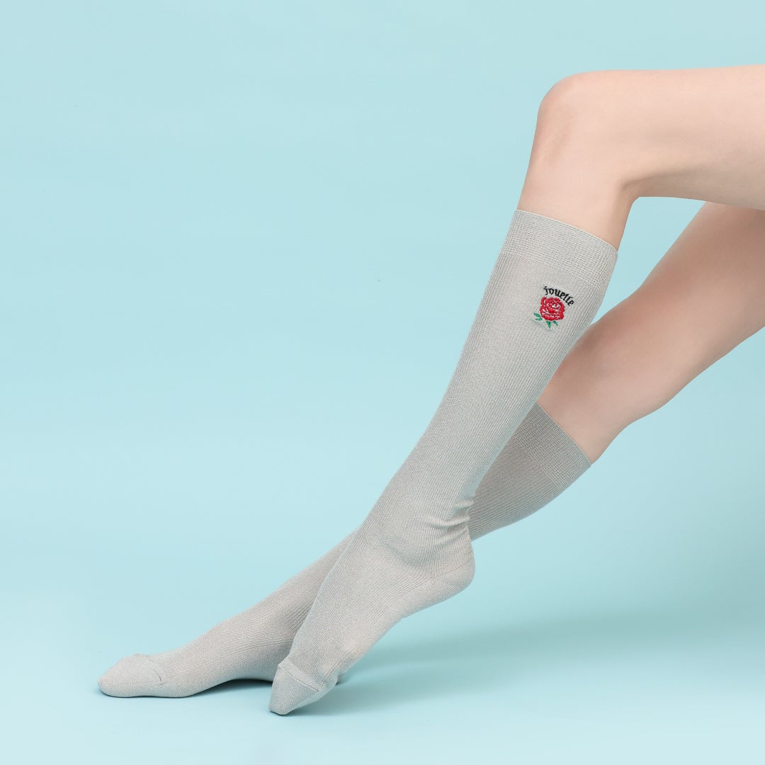 商品名:【jouetie × 靴下屋】刺繍ラメリブハイソックス