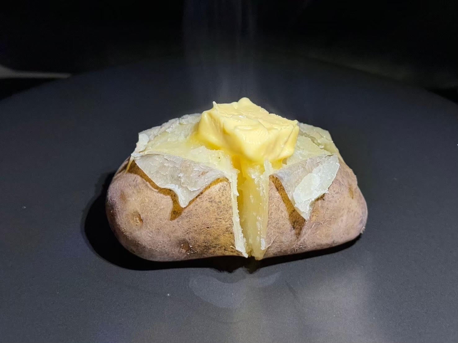 北海道・とかち井上農場の雪蔵貯蔵庫で2年熟成した糖度約12度のこだわりのメークインにバターをトッピング。