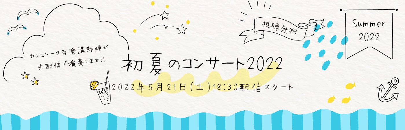 カフェトークでレッスンを提供している3名の音楽講師による、初夏をテーマにした演奏を生配信でお届けいたします。