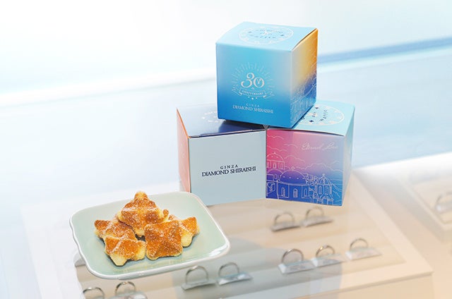 創立30周年を祝う特別パッケージのひとくちサイズのワッフルクッキーとウェルカムドリンクとともに、ゆっくりとリング選びをお楽しみいただけます。