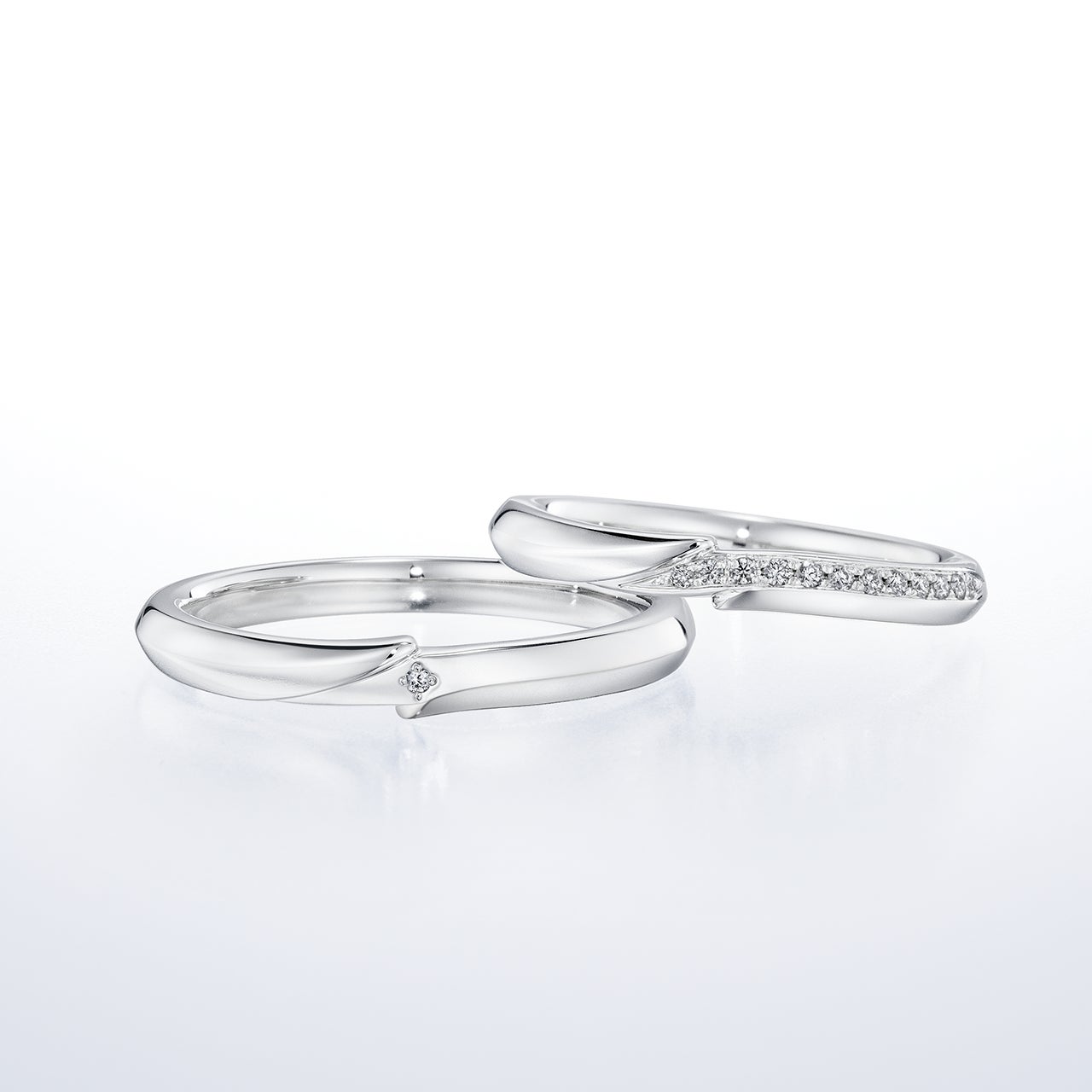 婚約指輪(エンゲージリング)と結婚指輪(マリッジリング)を重ねてつける「セットリング」も業界の先駆けとなっています。なめらかな着用感、サイドからみた美しさも細やかな手仕事がなすさらなる特徴です。