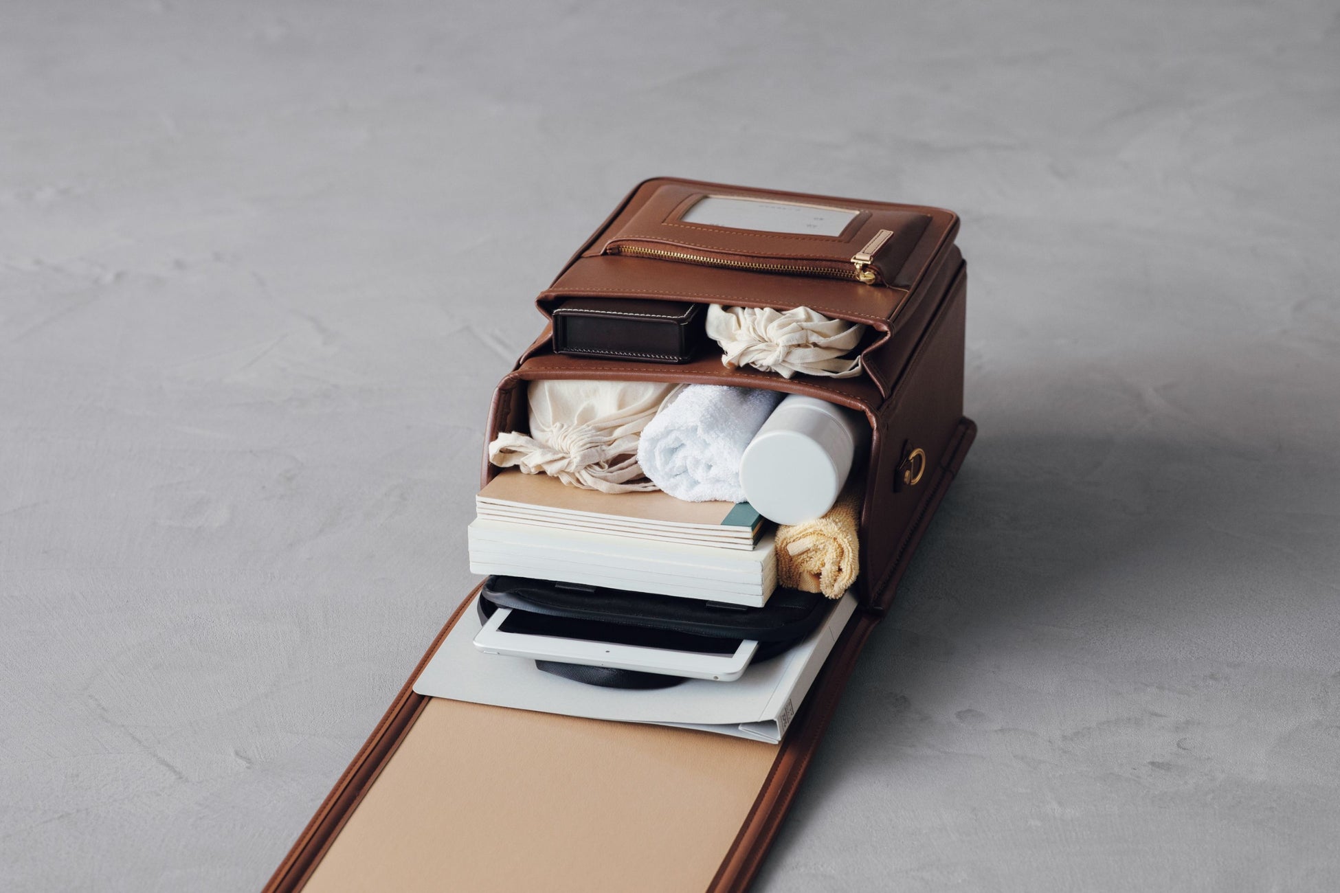タブレット端末や、厚さのある教科書などは背中側に収納すると、重心が安定するので重さを感じにくくなります。