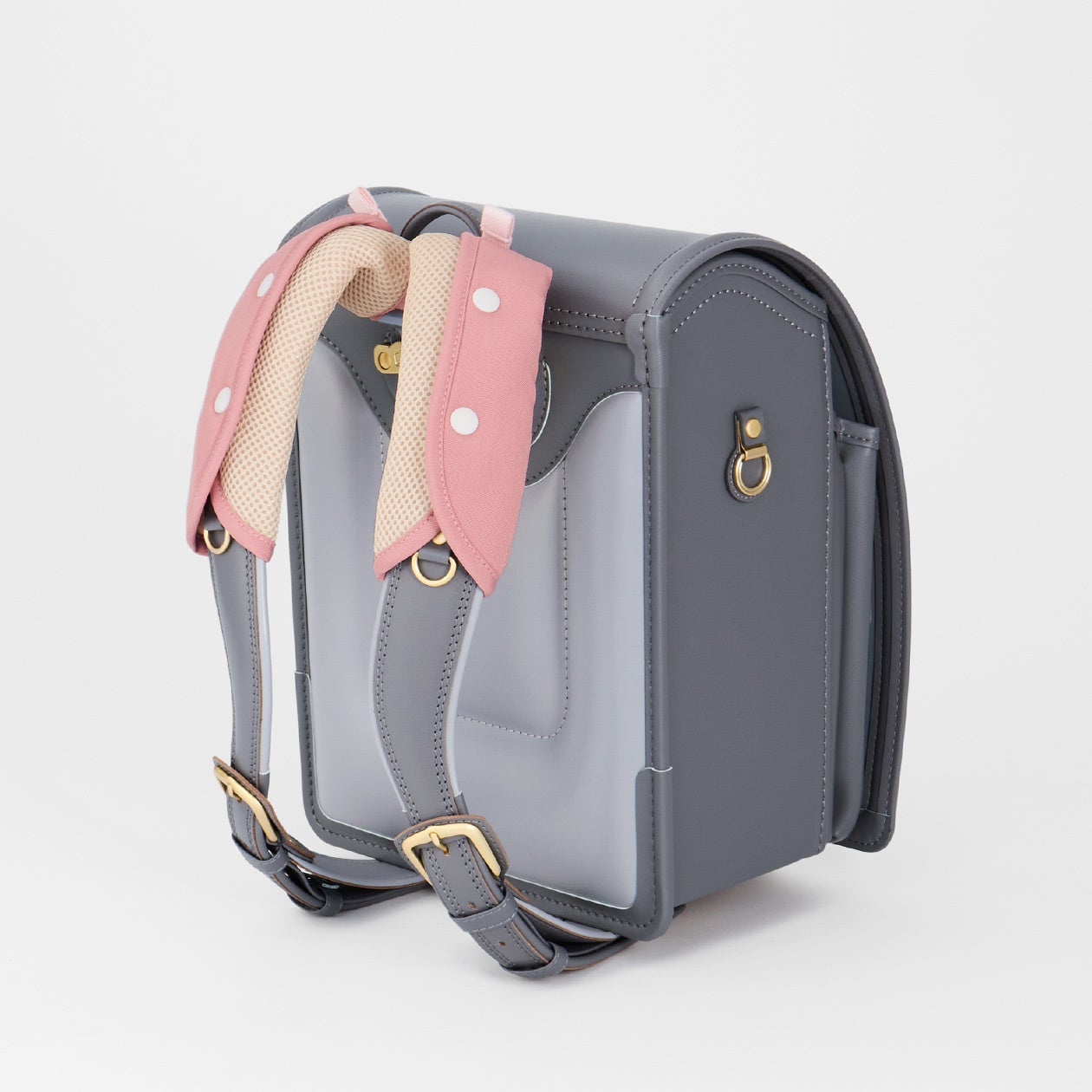 今年から、全製品(STOCK LUCKを除く)で肩ベルトのDカンを左右両側に備えました。お子さまの使い勝手に合わせて防犯ブザーなどを取り付けられます。