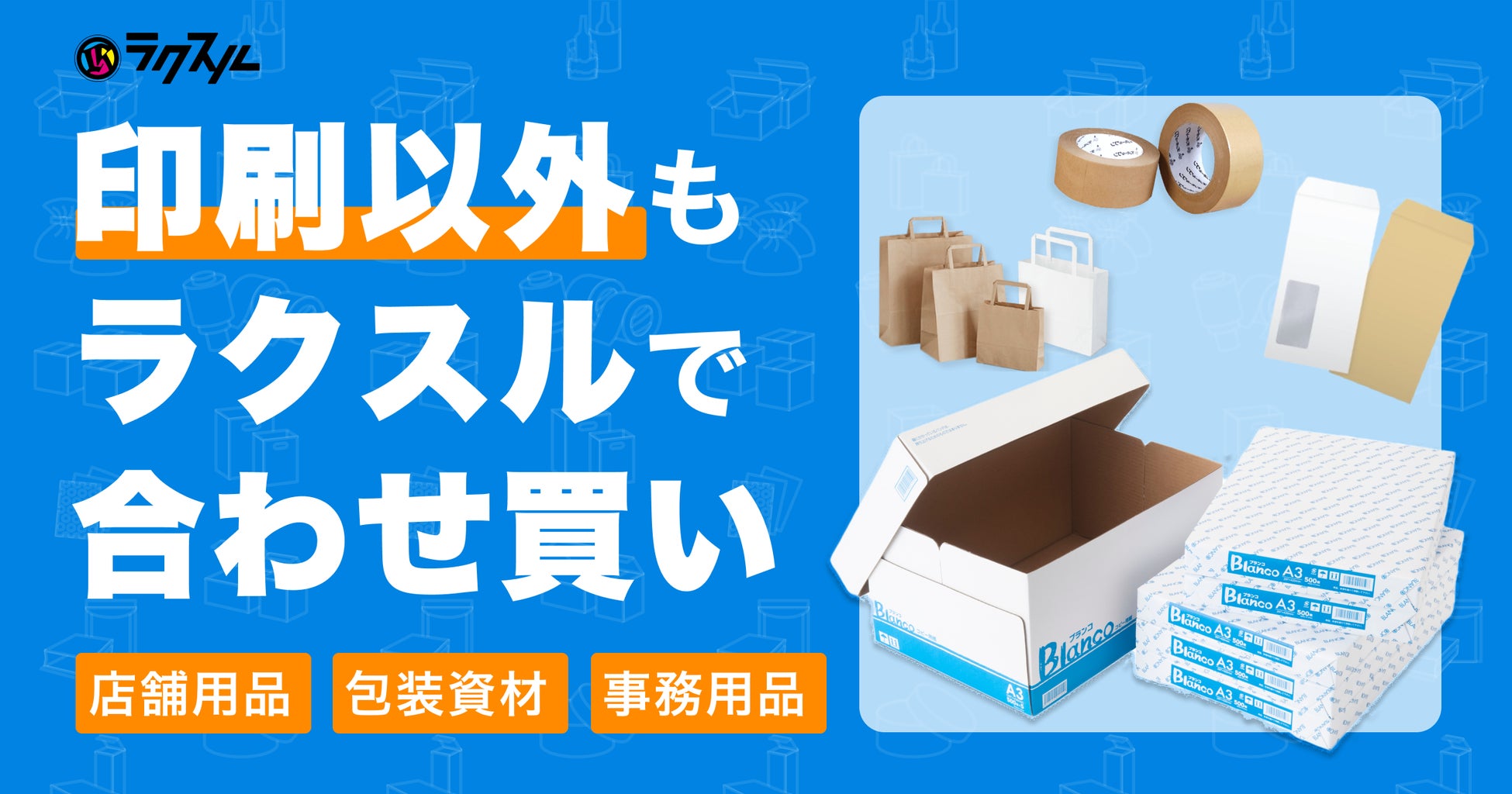 「ラクスル 店舗用品・包装資材」により、印刷と合わせて店舗運営に関わる消耗品類をご購入いただけるようになりました。