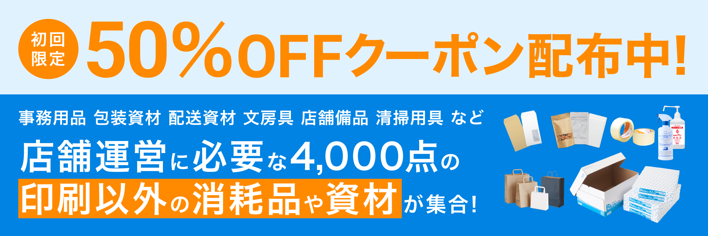 初回ご利用の方に限り、全商品50%オフクーポンを配布しています。この機会にぜひご利用ください。